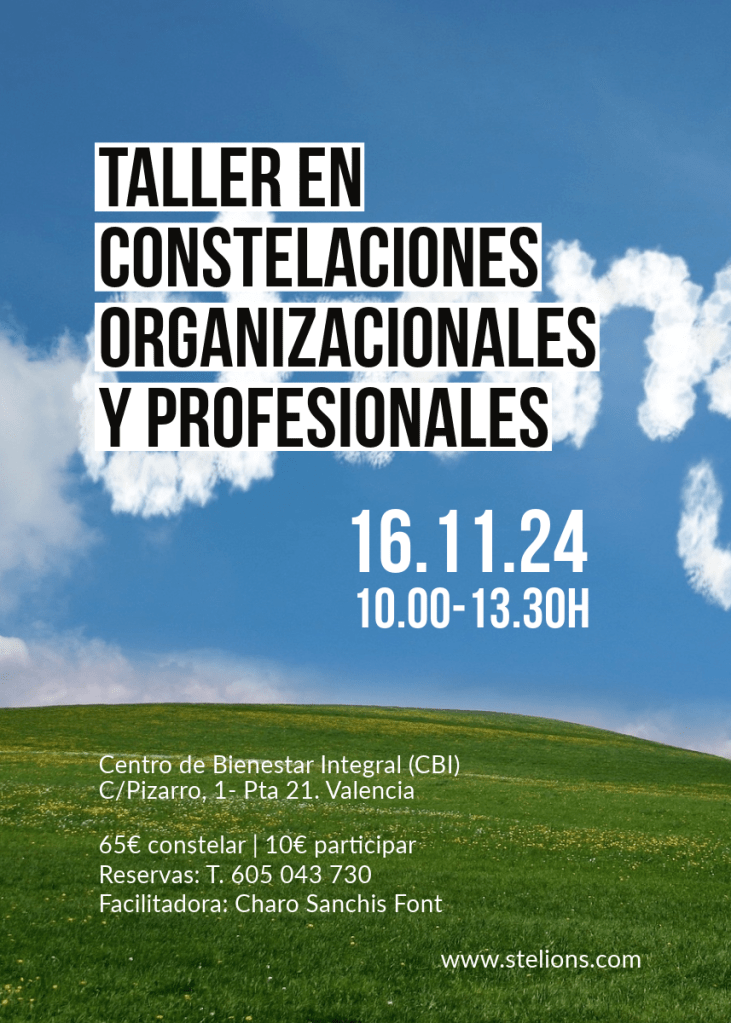 Aportación: 10 € participar / 65 € constelar (consultoría sistémica personalizada).